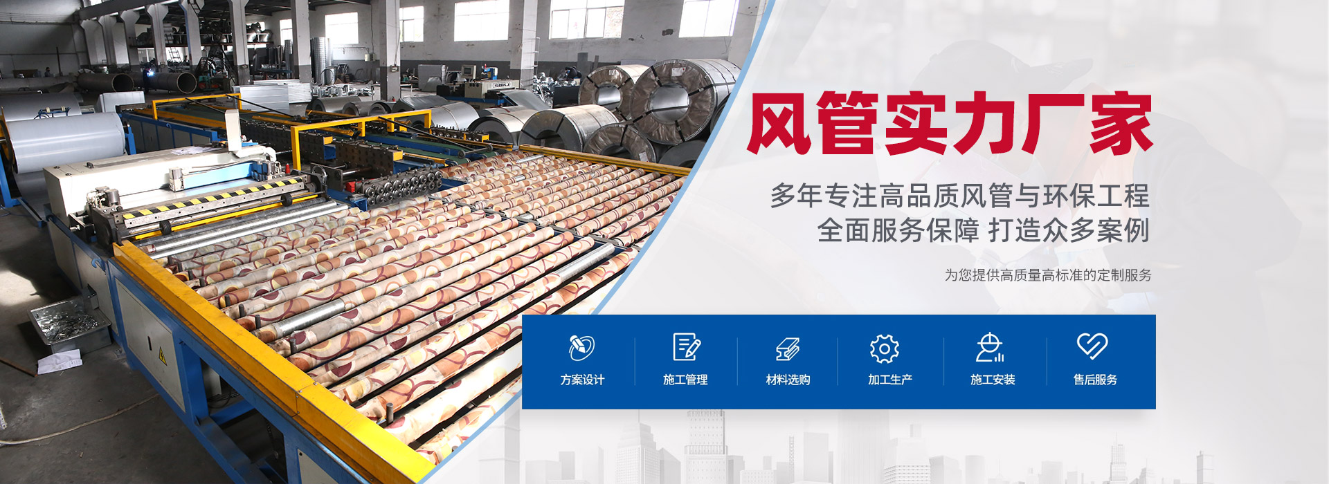 生產(chǎn)通風(fēng)管道及設(shè)備、環(huán)保工程設(shè)計(jì)、工程安裝及調(diào)試的環(huán)保技術(shù)企業(yè)