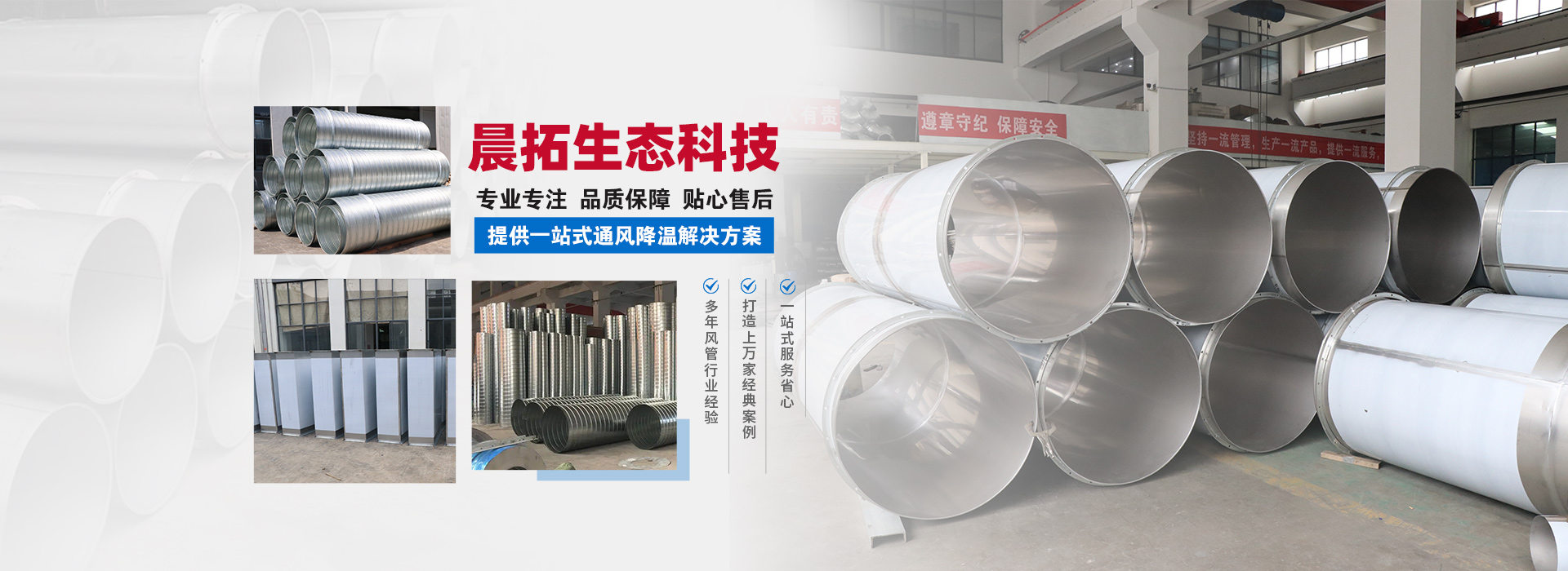 晨拓生態(tài)科技(常州)有限公司,是一家生產(chǎn)通風(fēng)管道及設(shè)備、環(huán)保工程設(shè)計(jì)、工程安裝及調(diào)試的環(huán)保技術(shù)企業(yè)。公司辦公大樓擁有四層1200平方,公司廠區(qū)擁有5000平方生產(chǎn)車間,擁用行業(yè)眾多先進(jìn)生產(chǎn)設(shè)備。公司主要生產(chǎn)螺旋風(fēng)管、焊接風(fēng)管、共板法蘭風(fēng)管、角鋼法蘭風(fēng)管、煙囪及塔架、雙層保溫風(fēng)管、吸氣罩、消音器、靜壓箱、彎頭、三通、大小頭、風(fēng)量調(diào)節(jié)閥等產(chǎn)品,我們同時(shí)承接機(jī)電暖通安裝工程。公司宗旨:"質(zhì)量保